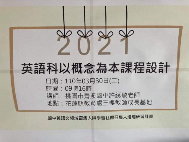 109學年下學期--英語輔導團央團蒞臨花蓮推動 概念為本教學探究 素養導向課程(1100330)