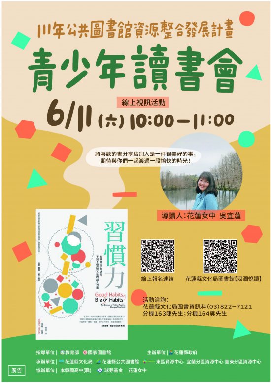 (八)活動聯絡人:活動詳情請洽花蓮縣文化局圖書資訊科03-8227121分機163陳先生。