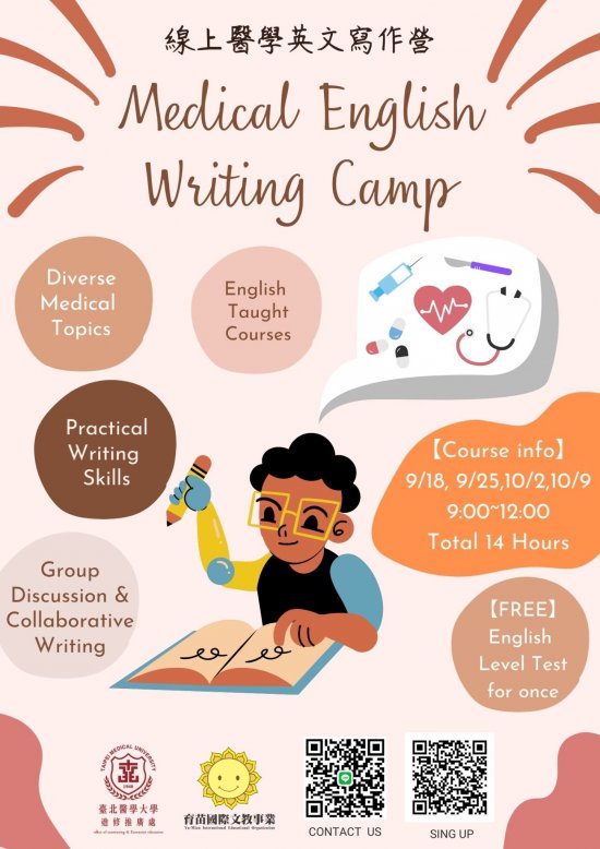為促進學生對醫學領域之認知並有效提升英文實力,臺北醫學大學進推處結合本校專業醫療師資、