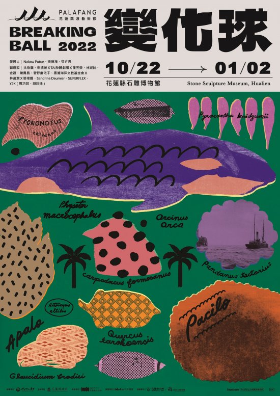 | 二、本活動以「花蓮當代藝術」為展示基調,並以「地方學」為策展核心概念,每一屆持續以視覺藝術展演形式建構花蓮當代藝術史之紋理脈絡。今年辦理第二屆主題定為「變化球」,由三位策展人Nakaw Putun、李德茂、張卉君領軍,邀請余欣蘭、林淑鈴、金磊、陳勇昌、菅野麻依子、黑潮海洋文教基金會X林盈潔X張根耀、Sandrine Deumier、SUPERFLEX、李德茂X TAI身體劇場X陳昱榮、Y2K(周巧其、胡悠揚)等10組藝術家共同展出。 |