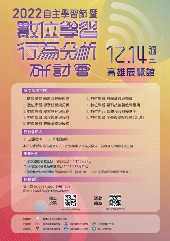 本案聯絡人:楊小姐(07)717-2930分機7028,Email:2022SRL@tlkr.nknu.edu.tw。