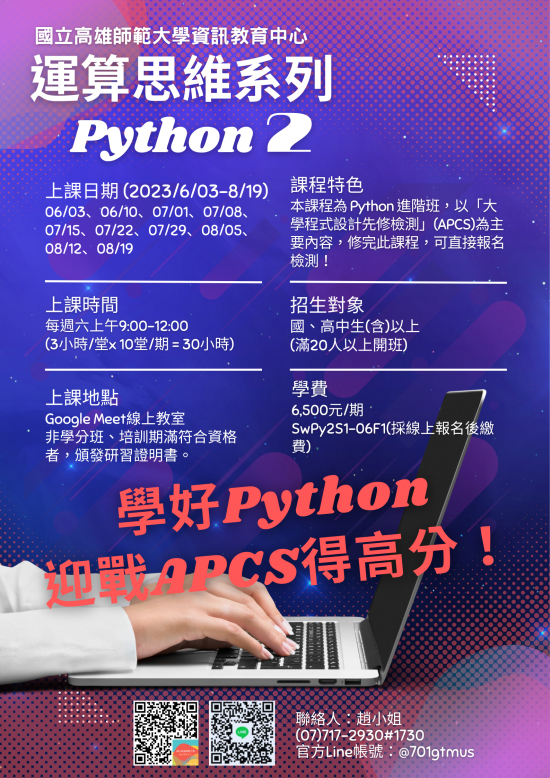 課程名稱:運算思維系列:Python 課程【國高中線上班】。