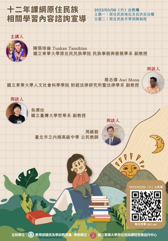 因應十二年國教新課綱正式實施,為解決第一線教師及學校單位面臨落實新課綱中與原住民族相關規範之挑戰,故規劃辦理相關推廣活動,以利各級學校單位落實新課綱原住民族具體相關規範。
