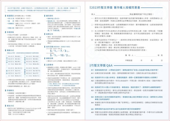 活動資訊及簡章內容請至網站:http://culture.hccg.gov.tw/業務項目/竹塹文學獎/公告下載,歡迎下載利用。