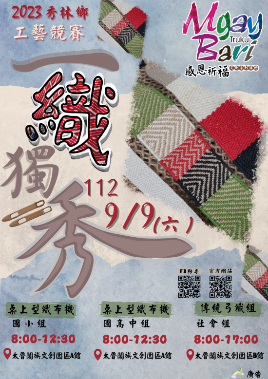 3、傳統弓織社會組:112年9月9日(六)上午9:30至下午5時。