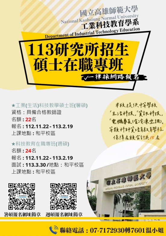 | 檢附工業科技教育學系招生海報電子檔。 |