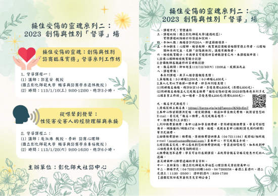 (二)督導課程二:接住受傷的靈魂-創傷療癒之督導系列工作坊 (教育)