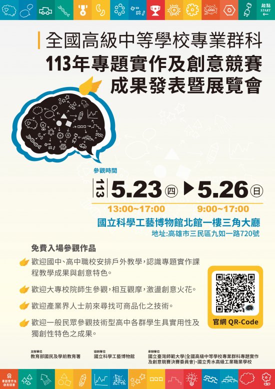 二、旨揭活動係展出全國技術型高中113年專題實作及創意競賽「專題組」及「創意組」15群第1名作品,展現技術型高中學習成果;展示方式包括實體展示及現場解說,由獲獎學生親自說明如何經由作品發揮創意,與日常生活或產業結合。