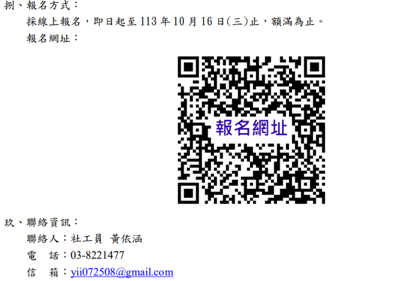 參、時間:113 年 10 月 23 日(星期三)9 時至 16 時,共 6 小時。