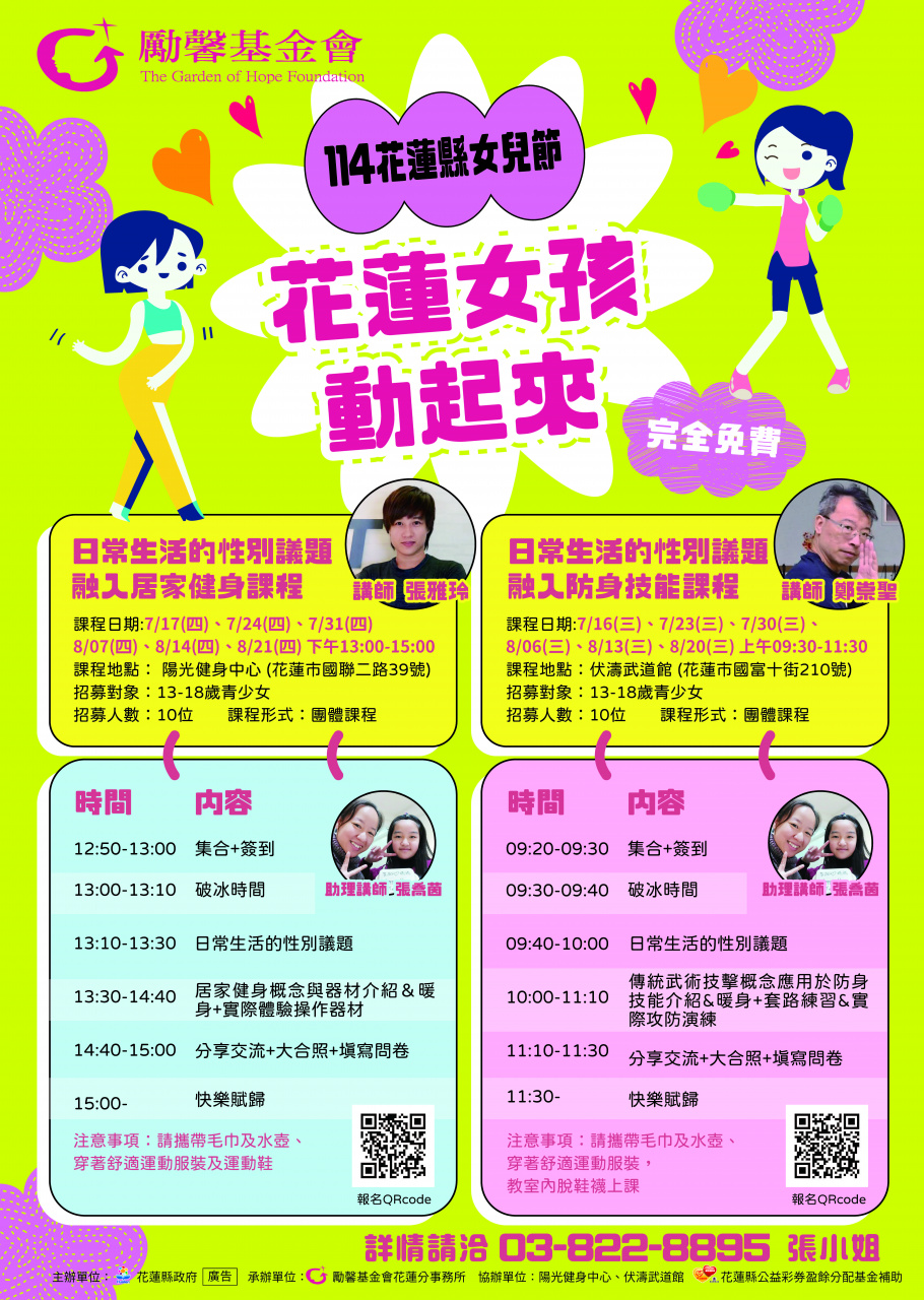 114年度花蓮女兒節-女孩動起來系列活動計畫-日常生活中的性別議題融入居家健身暨防身技能課程