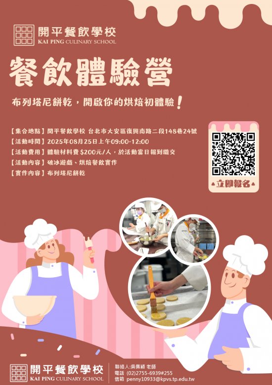 | 六、 | 活動地點:臺北市大安區復興南路二段148巷24號_開平餐飲學校102室報到。 |